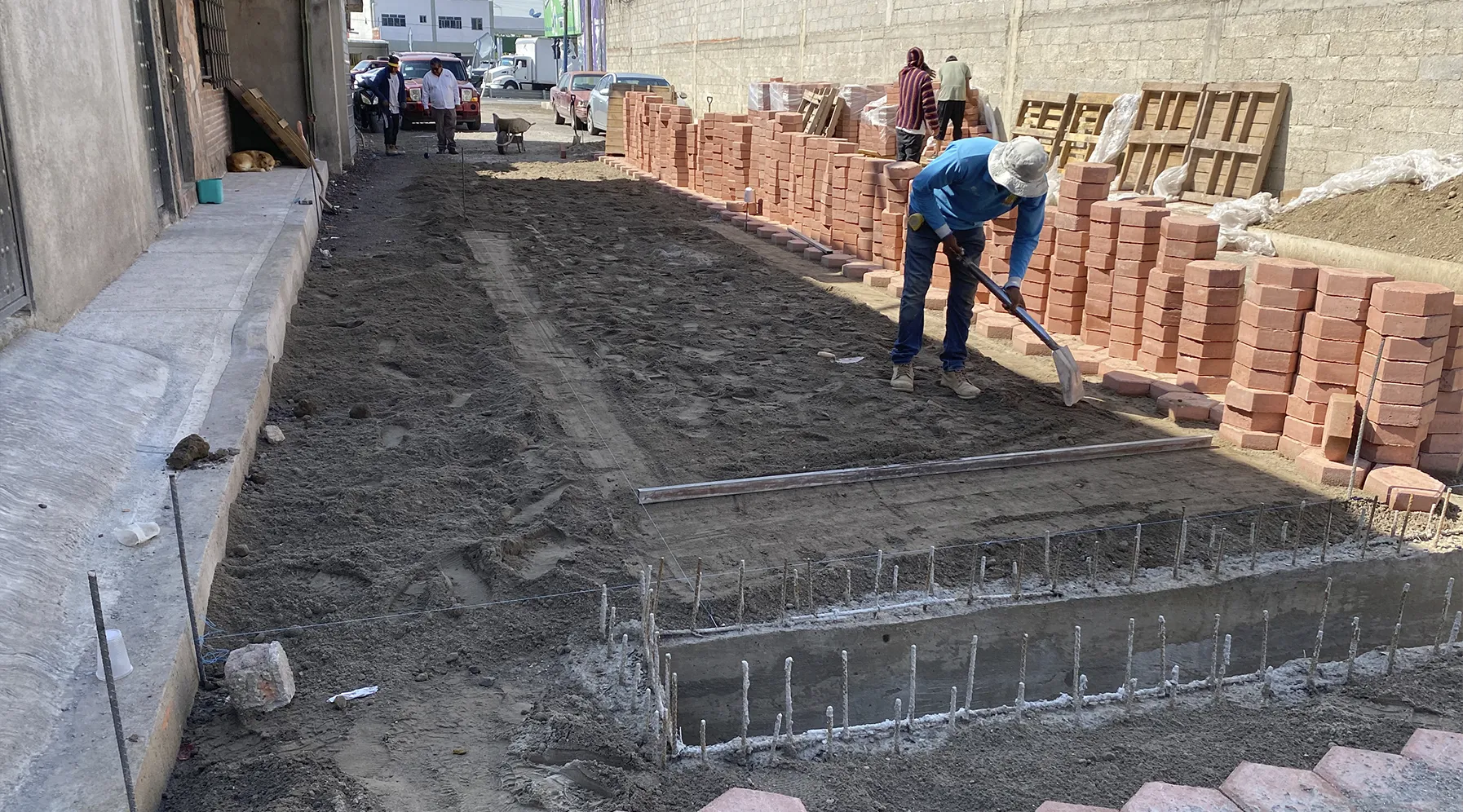 Pavimentación con adoquín de 85.00m de calle con un ancho de 8.00m, incluye construcción de banquetas y guarniciones.