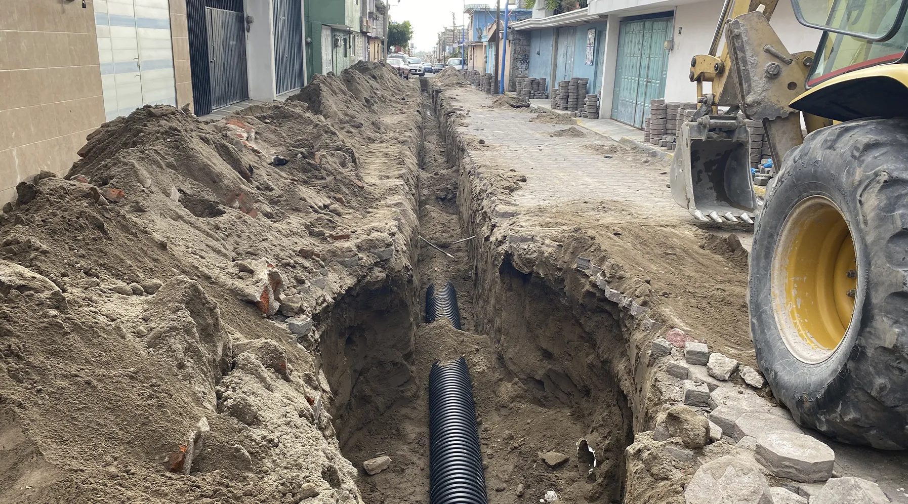 Sustitución de 125.25m de linea de drenaje con tubo de polietileno de alta densidad de 12 pulgadas de diámetro incluyendo 27 descargas sanitarias con tubo de polietileno de alta densidad de 8 pulgadas de diámetro y registros de mamposteria de 40X60.